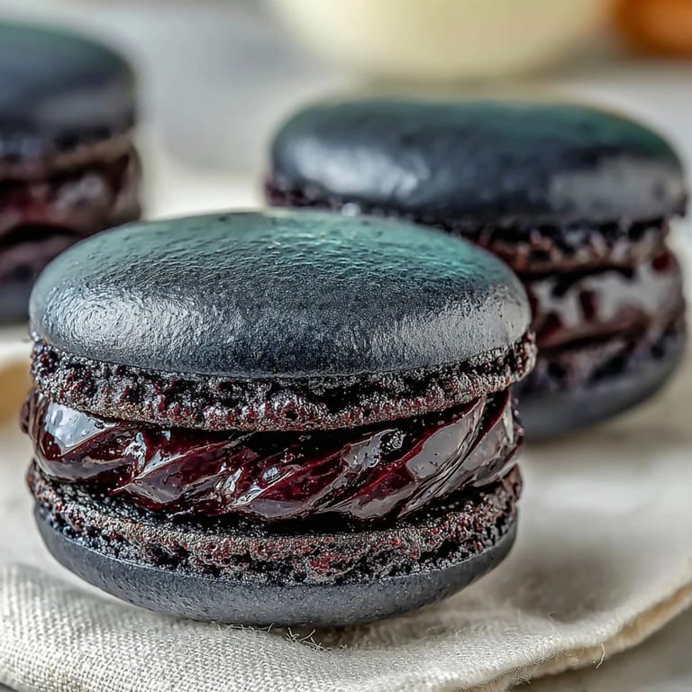 Save The first time I piped a macaron shell, my hands shook so badly that I nearly squeezed the entire batch across the baking sheet like an accordion. That kitchen disaster taught me patience, precision, and the quiet magic of French meringues. These black currant macarons arrived in my life during a particularly gray winter when I needed something luminous and delicate to look forward to. What started as nervous experimentation became an obsession with those paper-thin shells and the tart, luxurious ganache hiding inside. Now when I make them, the kitchen fills with a specific kind of calm, like I'm finally speaking a language I've learned to understand.