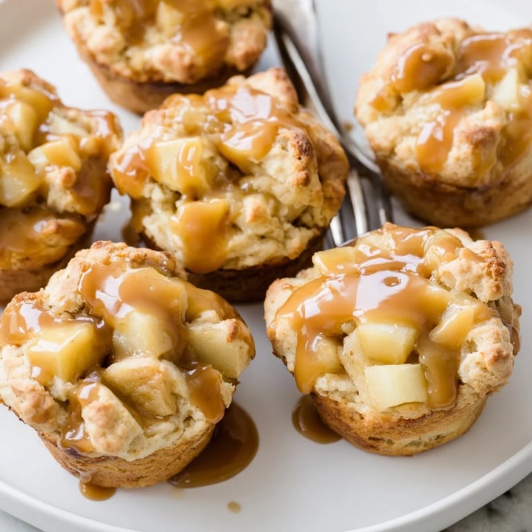 Save Moist, tender scone-style muffins bursting with fresh apples and topped with a decadent caramel glaze—perfect for breakfast or an indulgent snack.