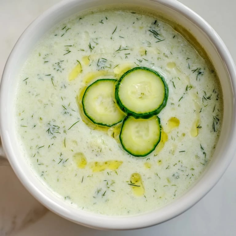 I brought this to a picnic once, poured into mason jars and packed in a cooler. My friend Sarah took one sip and asked if I'd opened a secret Greek cafe in my apartment. I hadn't told anyone it was just cucumbers and yogurt because honestly, it tastes like way more effort than it is. Everyone went back for seconds and I felt like a wizard.