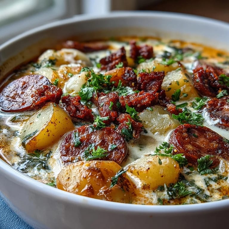 You can easily adapt this dish by substituting the chorizo with smoked sausage if you prefer a milder flavor. For those who enjoy a bit of heat, try adding a pinch of chili flakes during the simmering stage. To keep the meal gluten-free, always verify that your stock and bread are certified gluten-free.