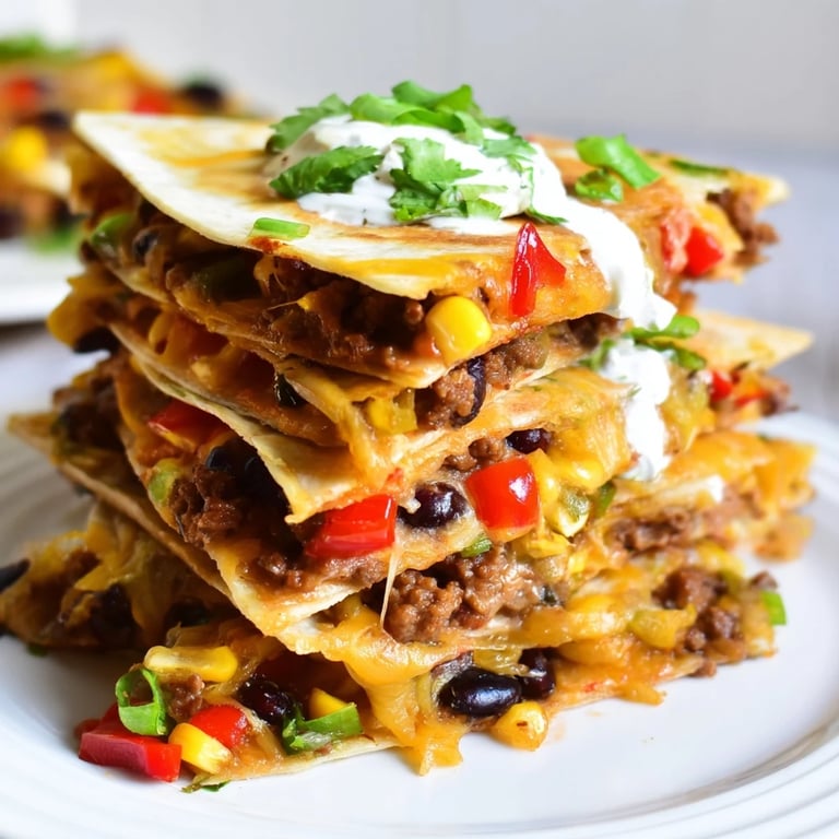 Save Crispy, golden quesadillas filled with seasoned beef, melted cheese, and colorful vegetables—baked on a sheet pan for an easy, crowd-pleasing meal.