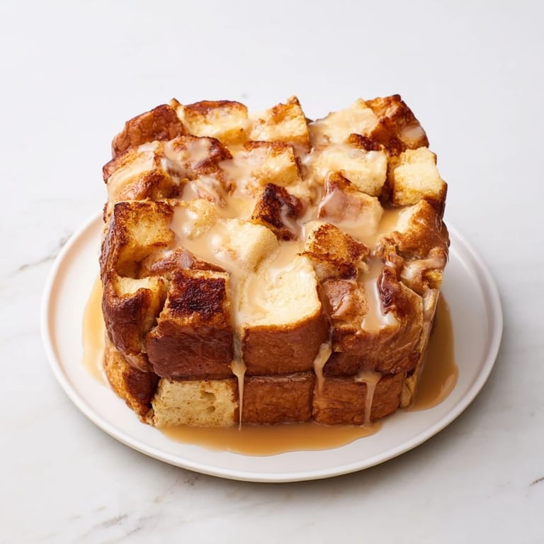 Save A warm, comforting breakfast casserole featuring custardy day-old bread, baked to golden perfection with hints of cinnamon and vanilla.