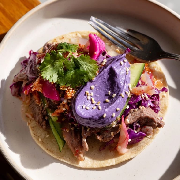 Save A vibrant flavor-packed recipe blending inspirations from street food around the world—think Korean bulgogi tacos Filipino ube crema and zesty Mexican toppings. Perfect for a fun customizable meal!