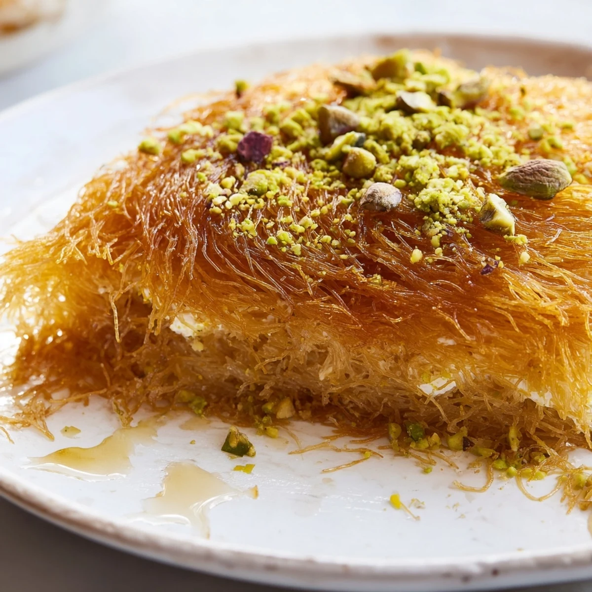 The magic of knafeh lives in its contrasts—crispy against soft, sweet against floral, hot against cool syrup. Getting this balance right means respecting the timing at each stage. The kataifi needs enough butter to crisp but not so much that it becomes greasy. The syrup needs to be cool so it doesn't turn the pastry to mush when it hits the hot knafeh. The cheese needs to be the right temperature to stretch but not run everywhere. These details matter, and once you understand them, you can adjust the recipe to your own preferences.
