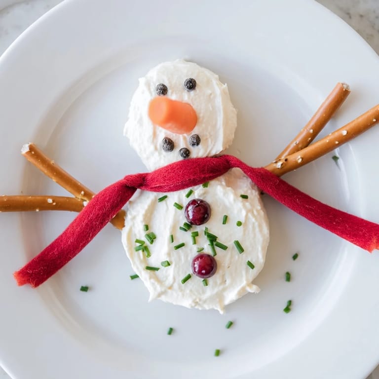 Save A playful and creamy appetizer featuring a festive melted snowman made of cheese and yogurt, perfect for holiday gatherings and sure to delight kids and adults alike.