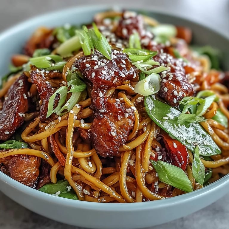 Save There's something almost meditative about the sound of a hot wok hitting the stovetop—that sharp sizzle that tells you everything's about to happen fast. I discovered this pork noodle stir-fry on a Wednesday evening when I had forty minutes and absolutely no plan, only a package of noodles and some pork in the fridge that needed rescuing. What emerged was something so balanced, so quick, and somehow so comforting that it became my go-to answer whenever someone asks what I'm making for dinner on a busy night. The magic isn't in complexity; it's in understanding that crisp vegetables and tender pork need only good timing and a sauce that knows what it's doing.