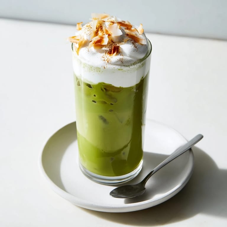 This iced matcha latte is a delightful blend of warming spices and refreshing creaminess, perfect for any season.